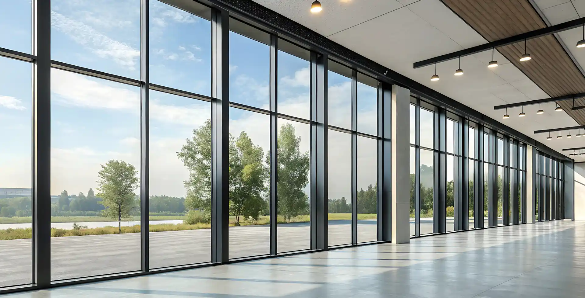 Architectural glazing systems, curtain walls, frameless partitions, and aluminium facade solutions.