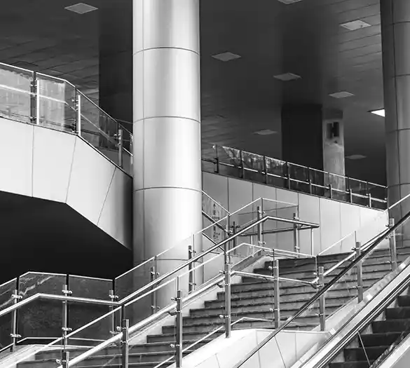 Steel, stainless steel, and glass handrail systems engineered for safety and durability.